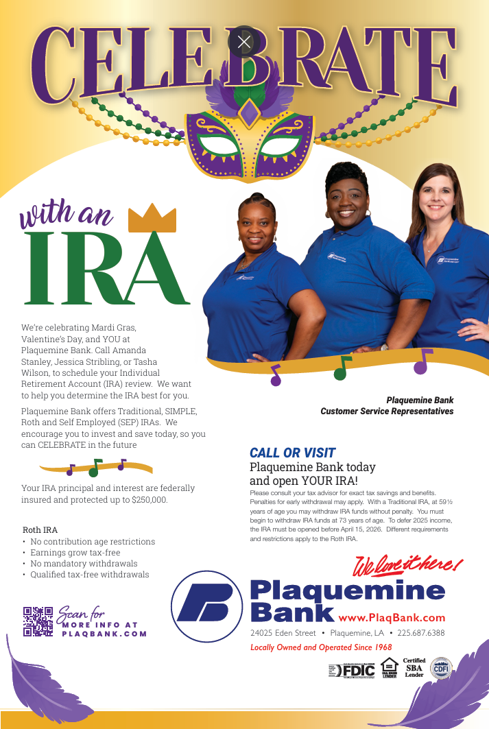 It's IRA Time at Plaquemine Bank!